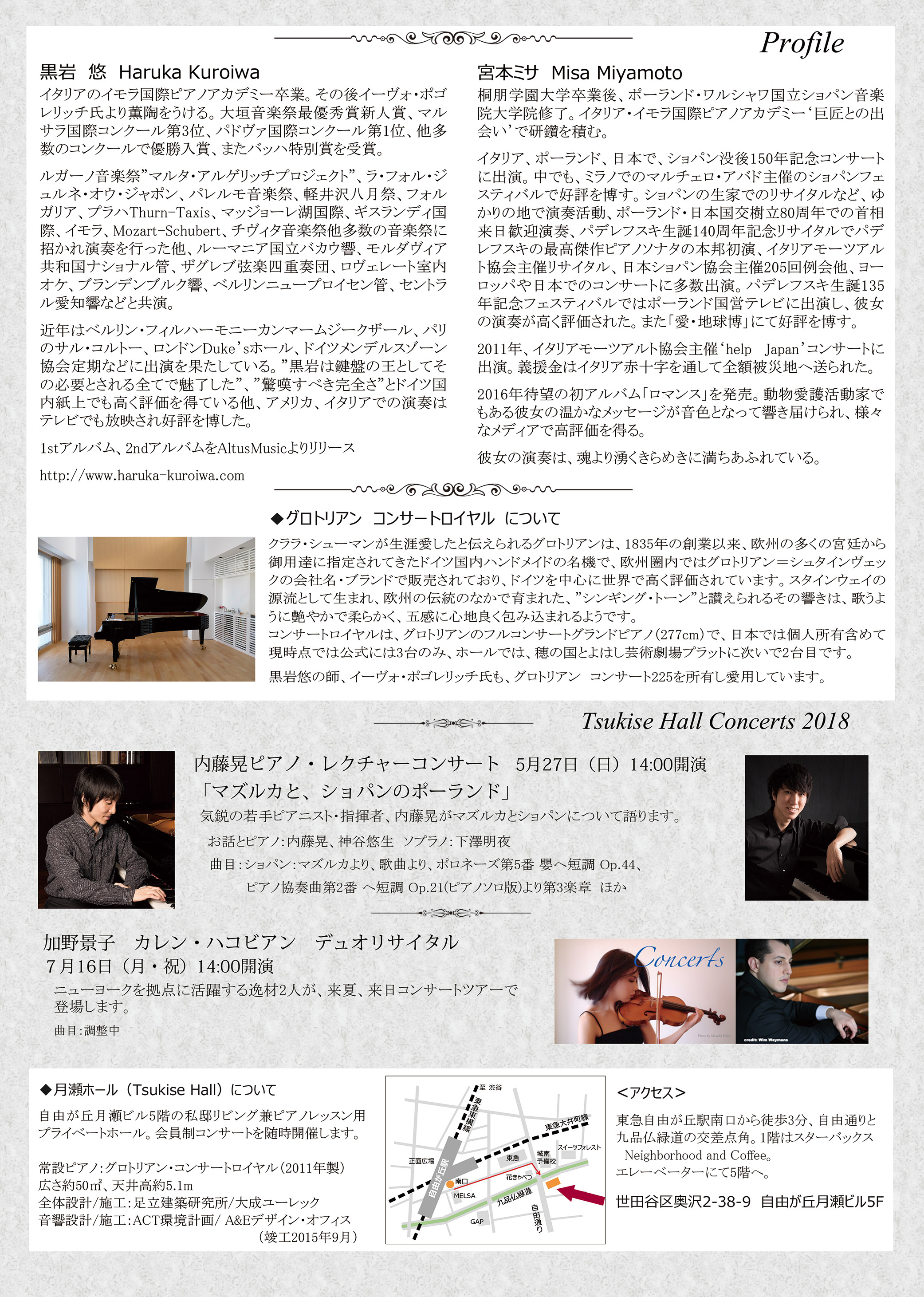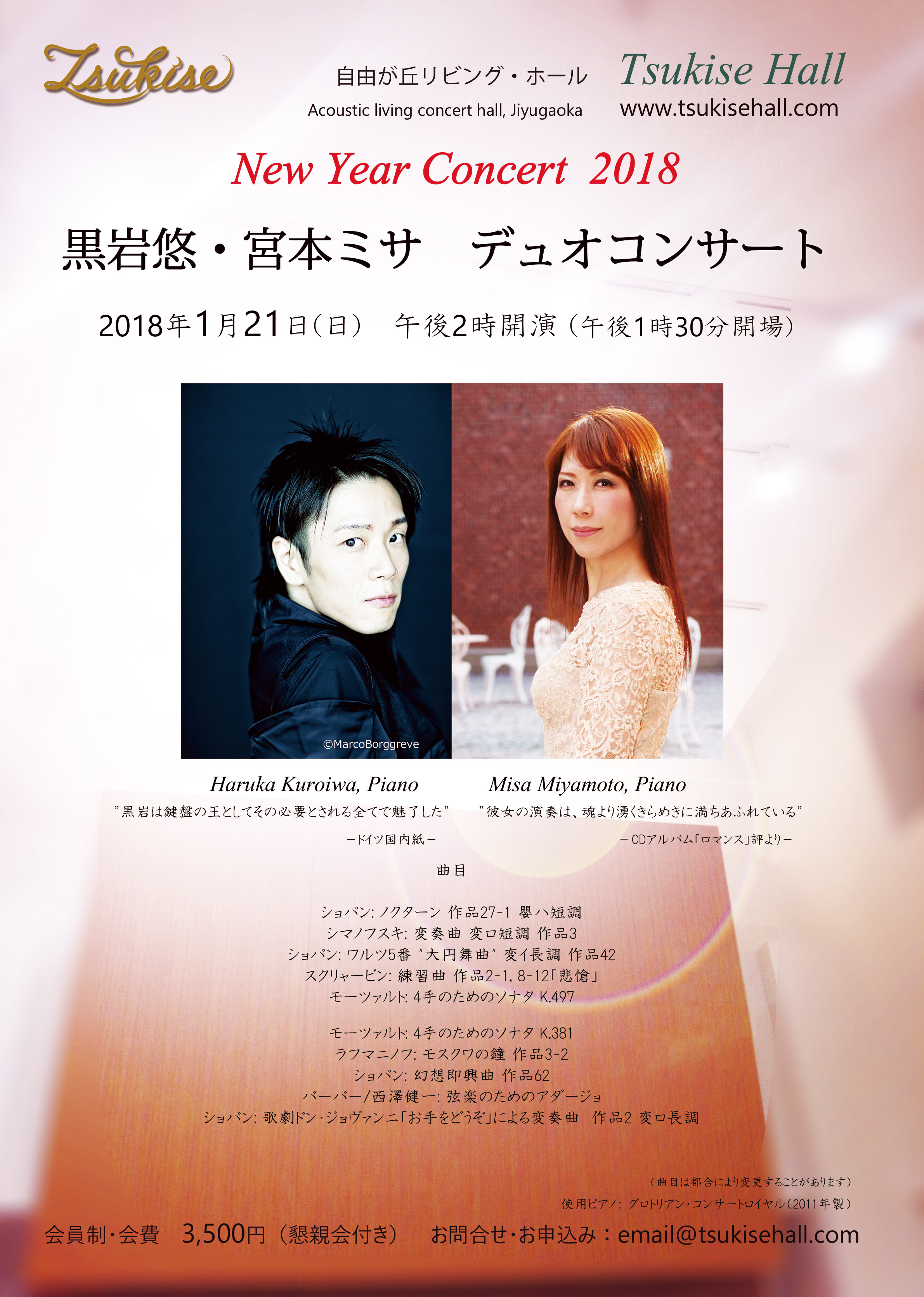 2018年のニューイヤーコンサートは、イタリアのイモラ国際ピアノアカデミーで研鑽を積んだ、黒岩悠、宮本ミサのお二人によるデュオ・コンサートです。