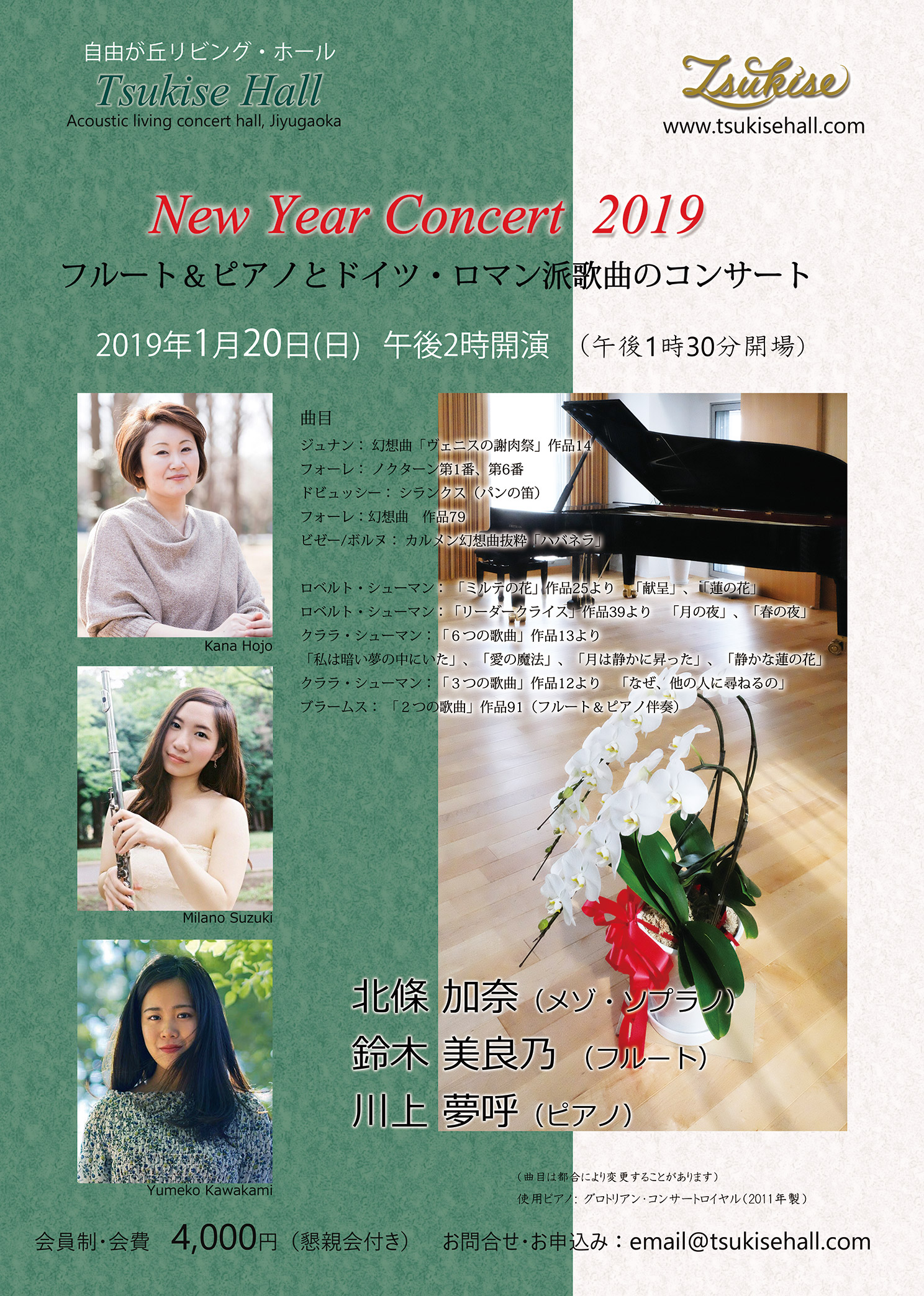 メゾ・ソプラノ、それと、フルートとピアノの若い3人の演奏で、新年を華やかに祝います。