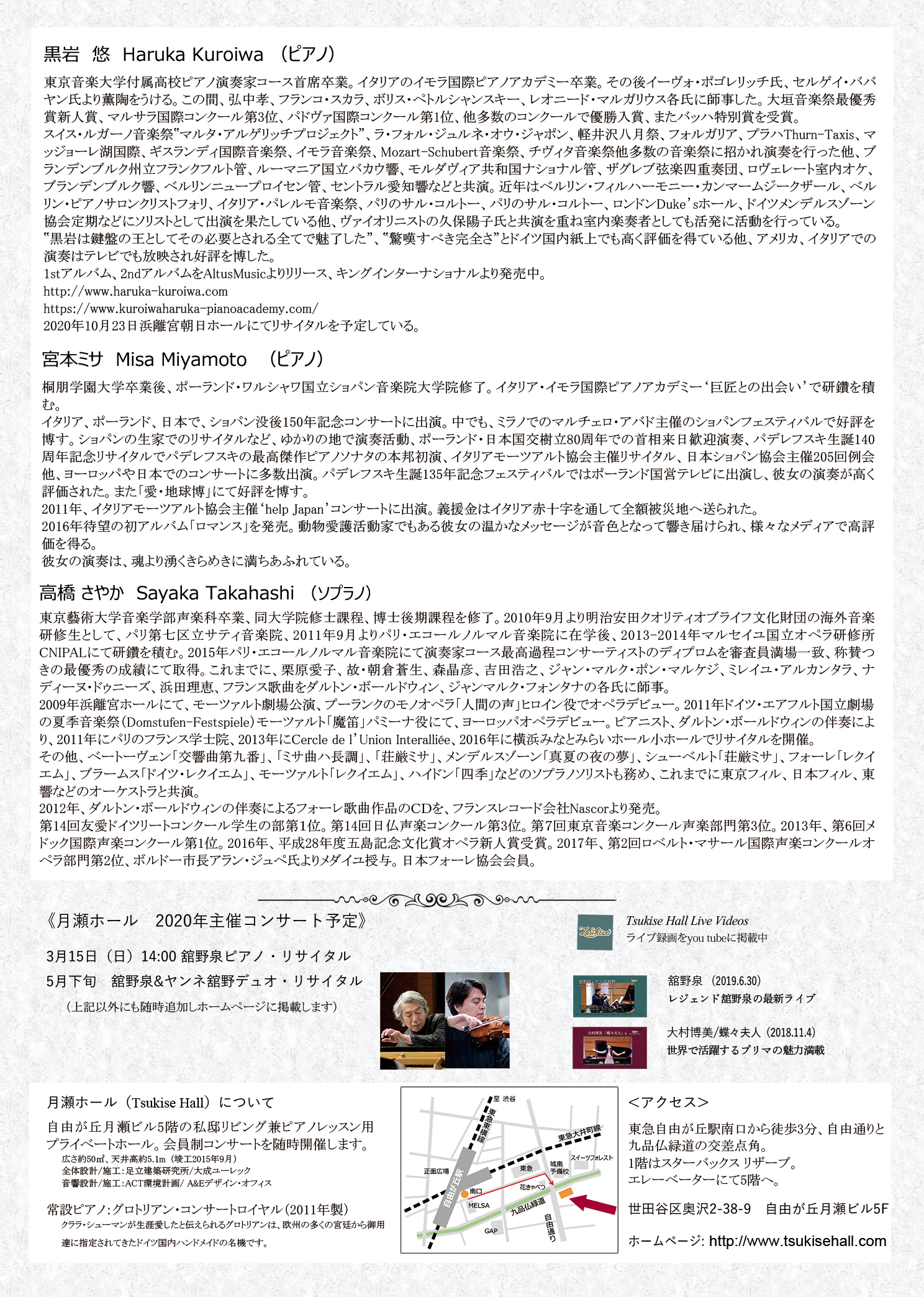 出演: 黒岩 悠(ピアノ)、宮本 ミサ(ピアノ)、高橋さやか(ソプラノ)