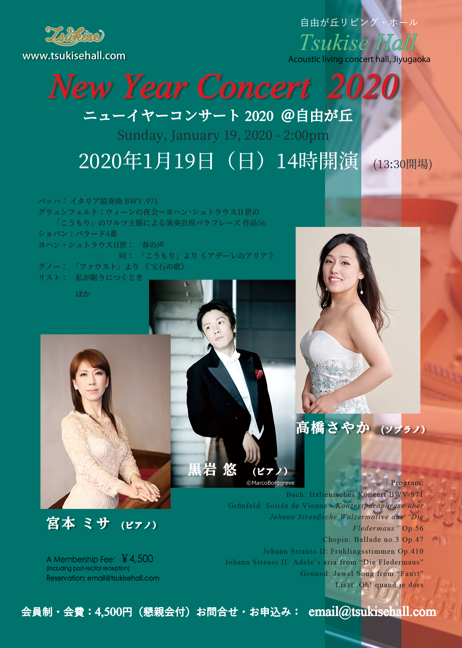 2020年2月19日(日)月瀬ホール ニューイヤーコンサート 2020 New !!