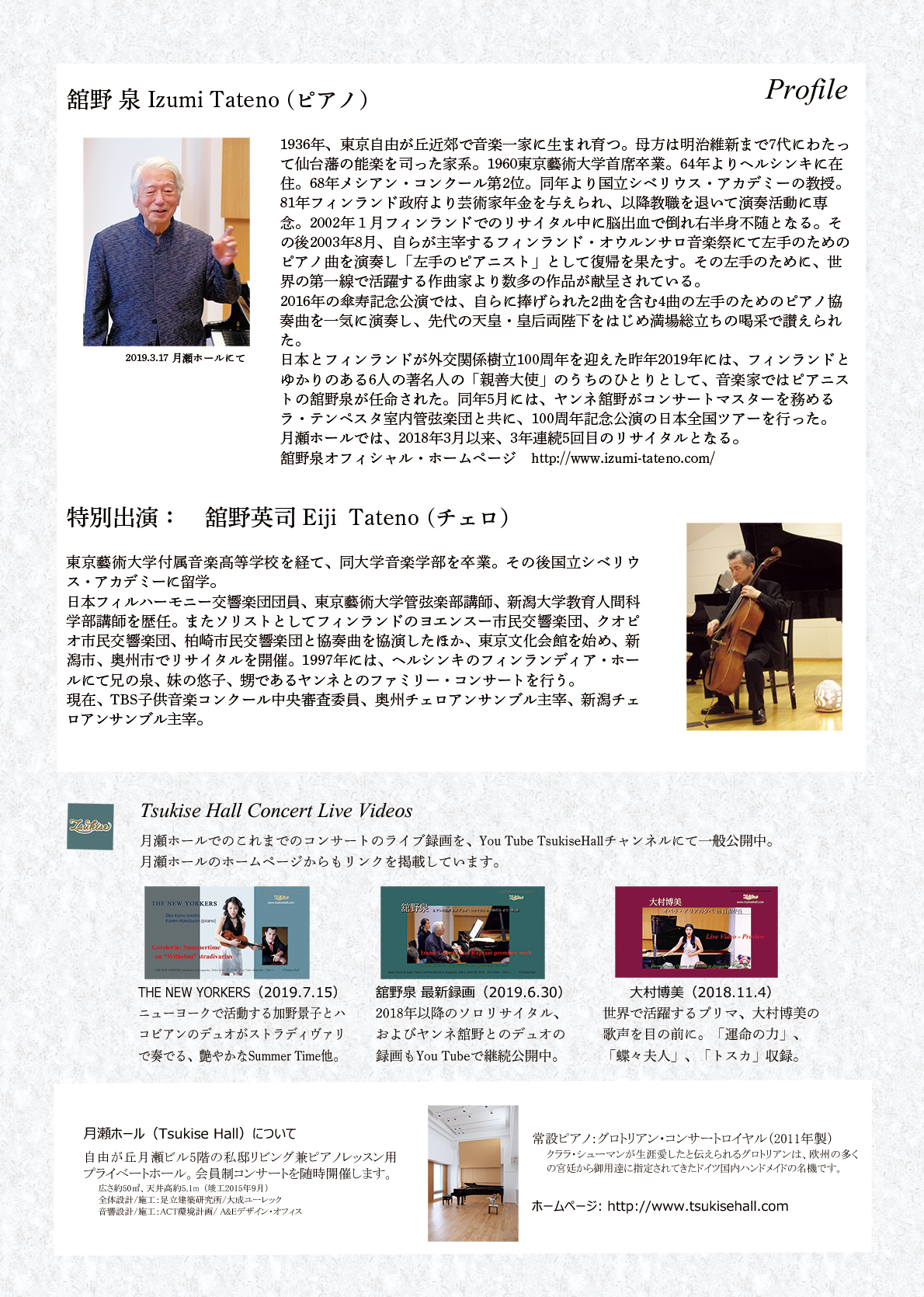 出演: 舘野泉(ピアノ)、舘野英司(チェロ:特別出演)