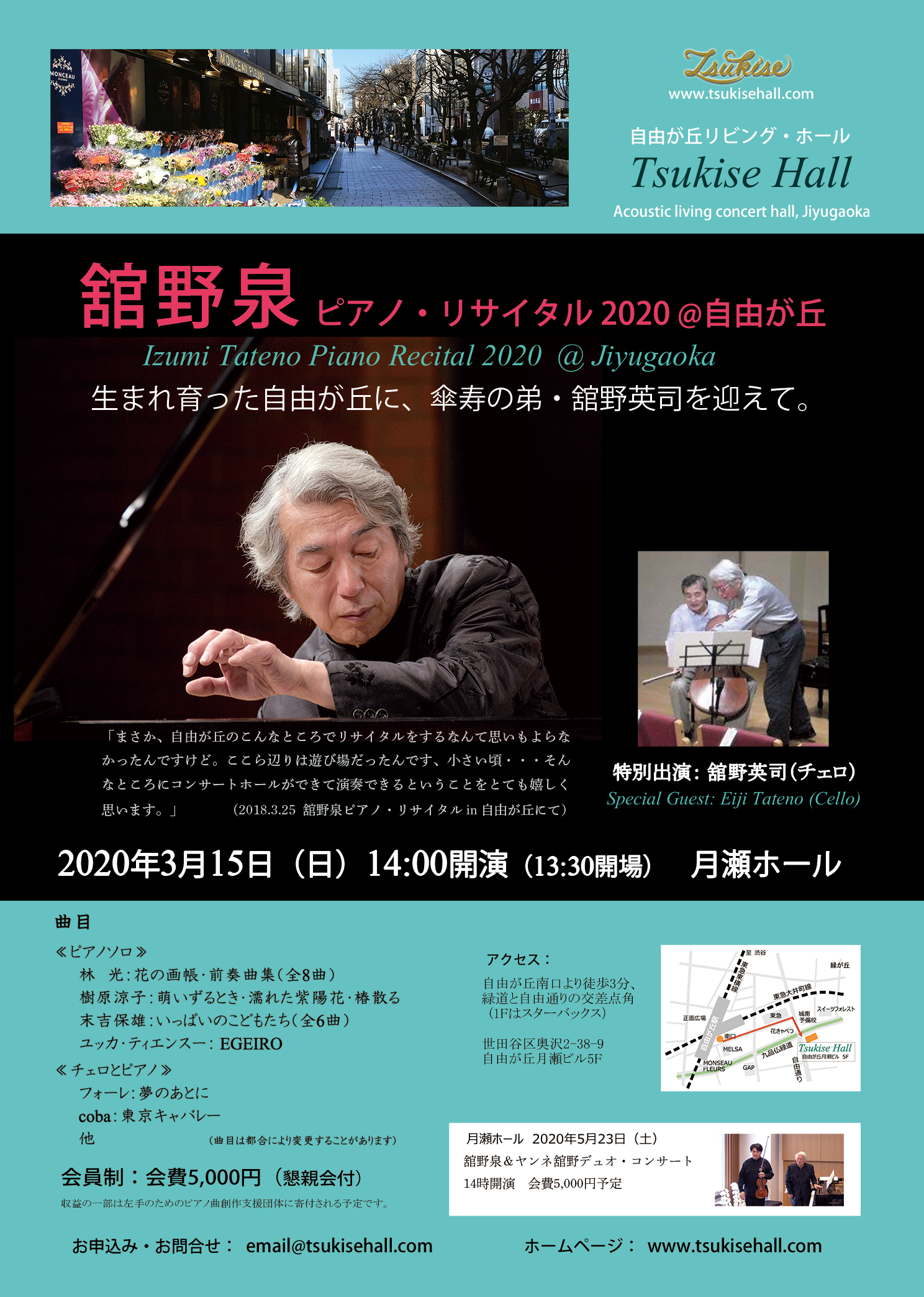 2020年3月15日(日)舘野泉ピアノ・リサイタル2020 @自由が丘 Updated !!