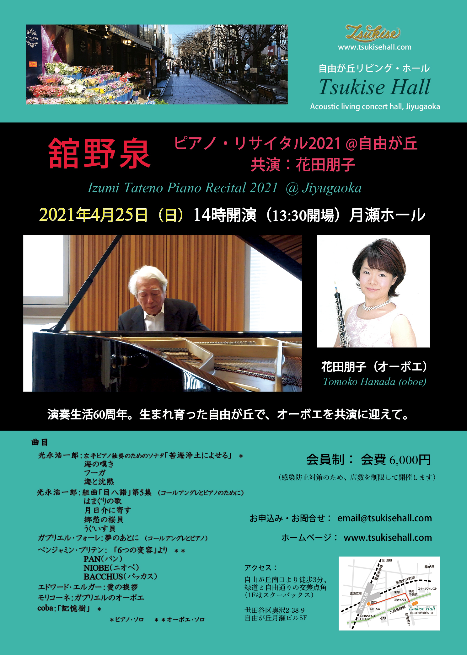 2021年4月25日(日)舘野泉ピアノ・リサイタル2021 @自由が丘