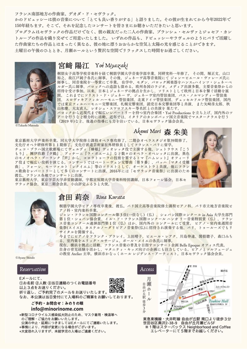 ~セヴラック生誕150周年記念特別公演~ 主催:みのりの眼、協力:月瀬ホール