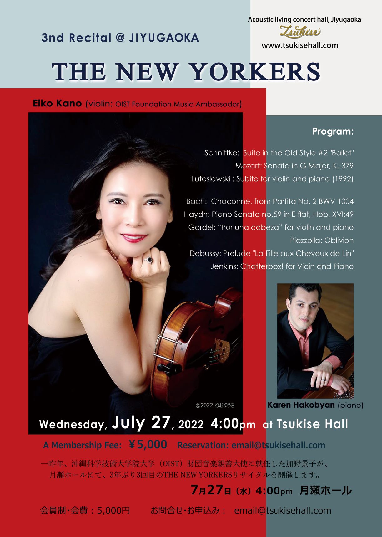 2022年7月27日(水)4:00pm THE NEW YORKERS 3rd Recital @自由が丘 は終了しました。ご来場御礼。