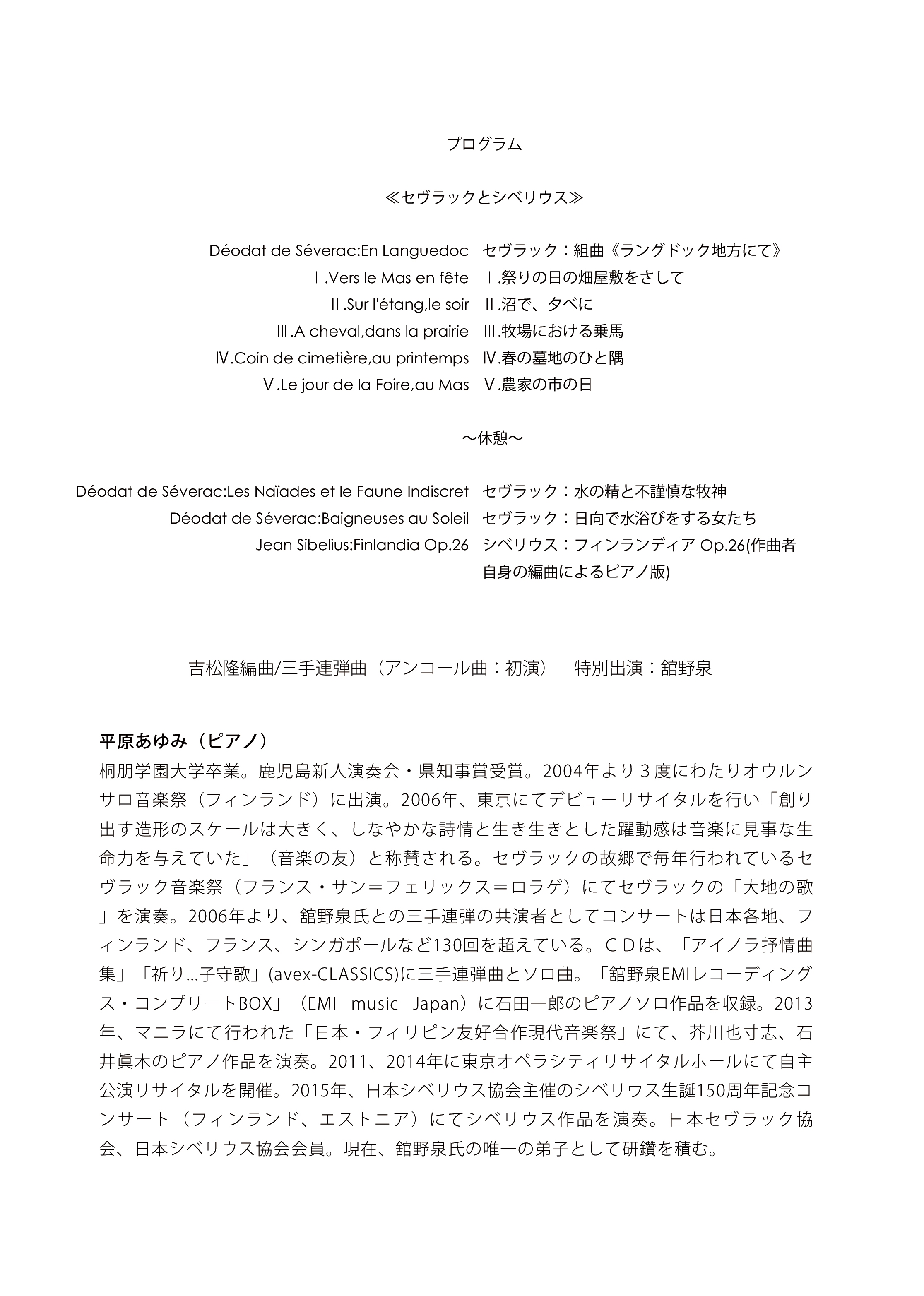 プログラム ~ セヴラック:組曲《ラングドック地方にて》、同:水の精と不謹慎な牧神、同:セヴラック:日向で水浴びをする女たち、
