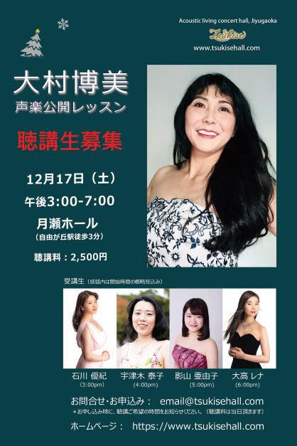 2022年12月17日(土)午後3時~7時 大村博美 公開レッスン は終了しました。ご来場御礼。