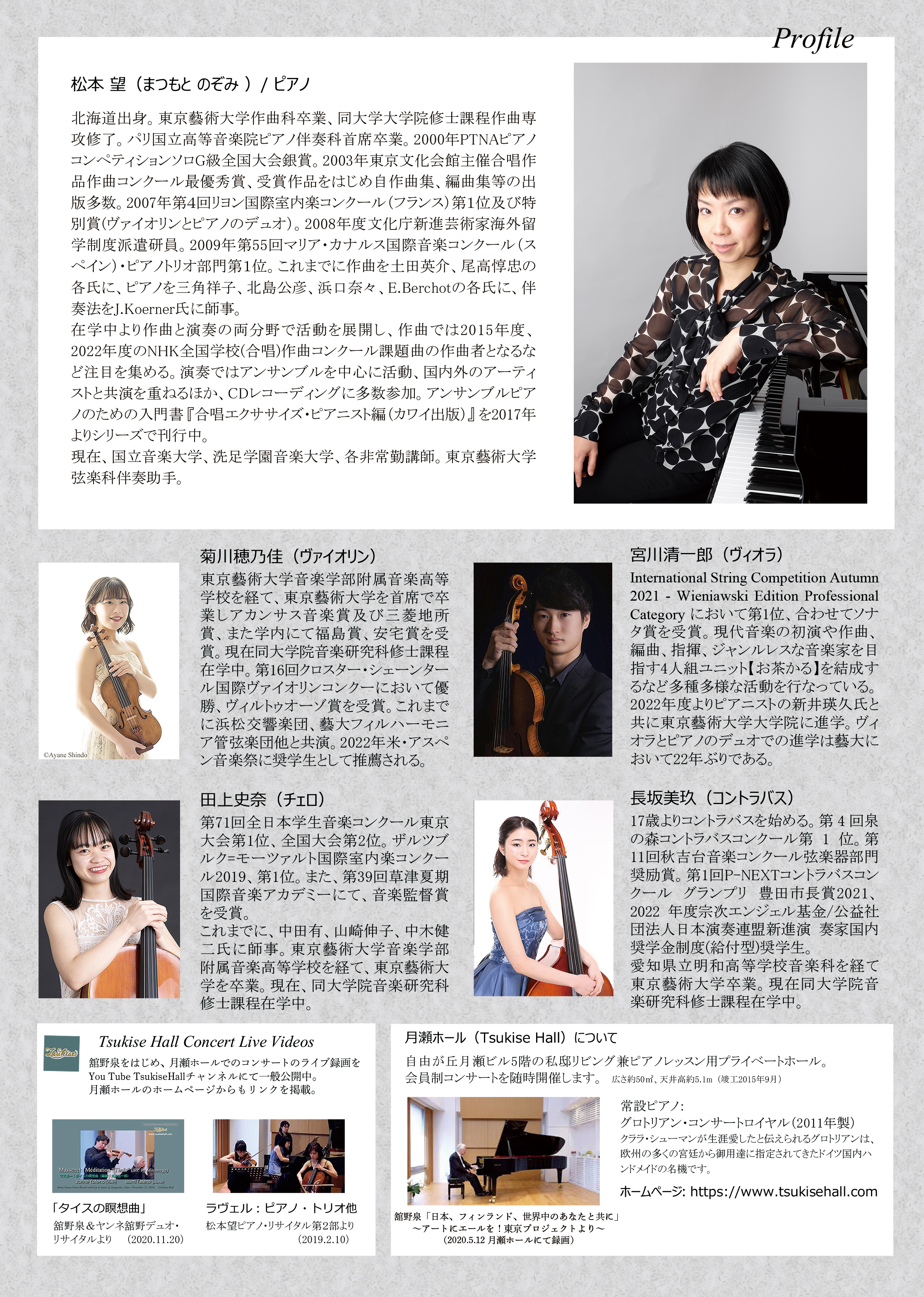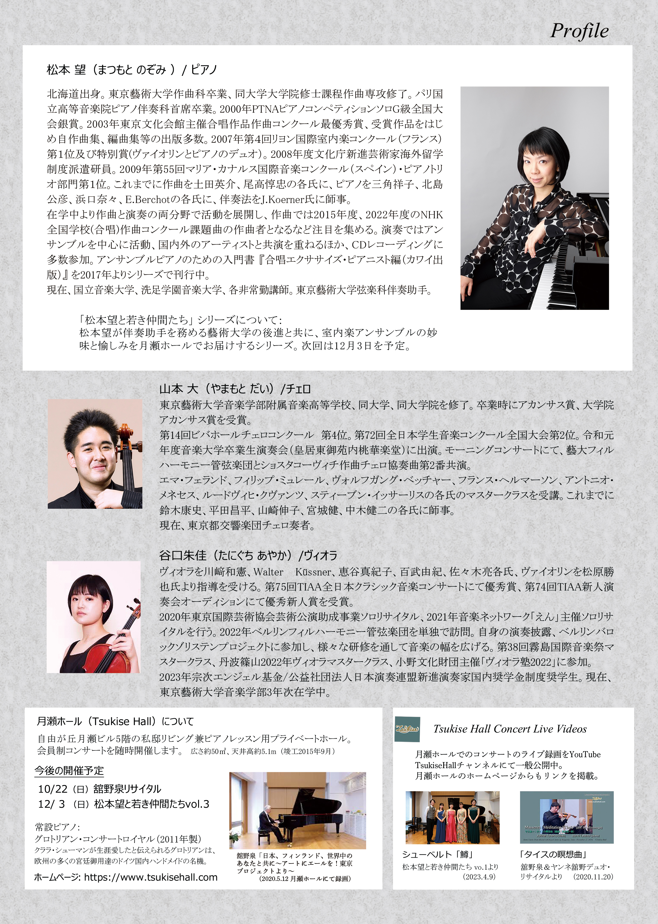《出演》辻 愛結実(ヴァイオリン)、泉 優志(チェロ)、松本 望(ピアノ)