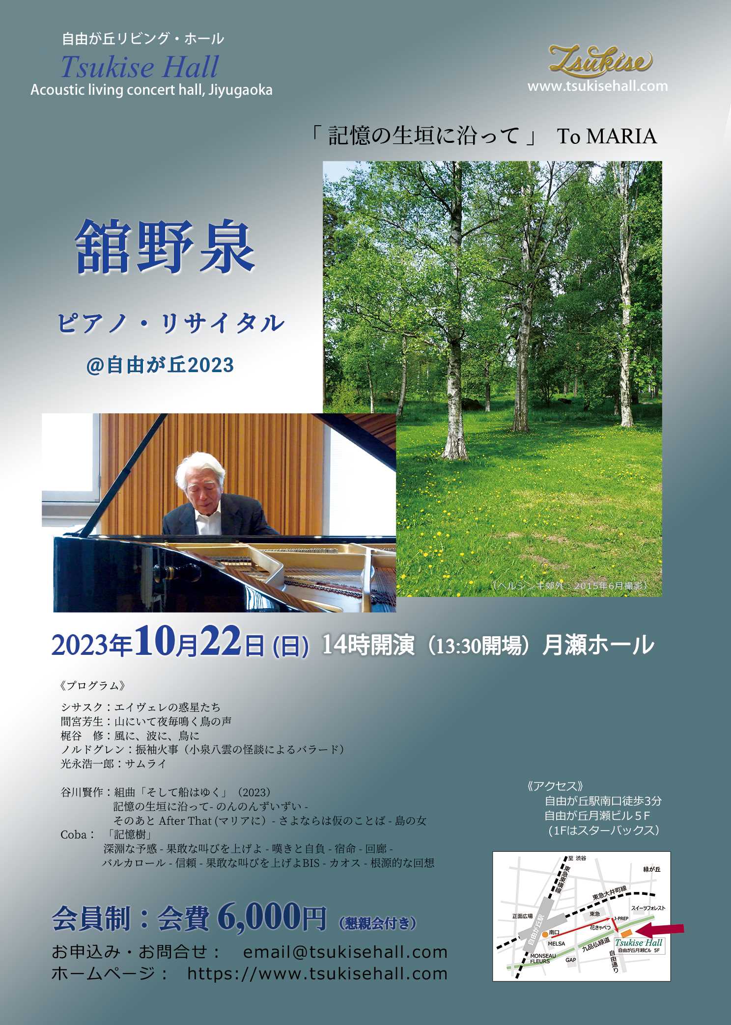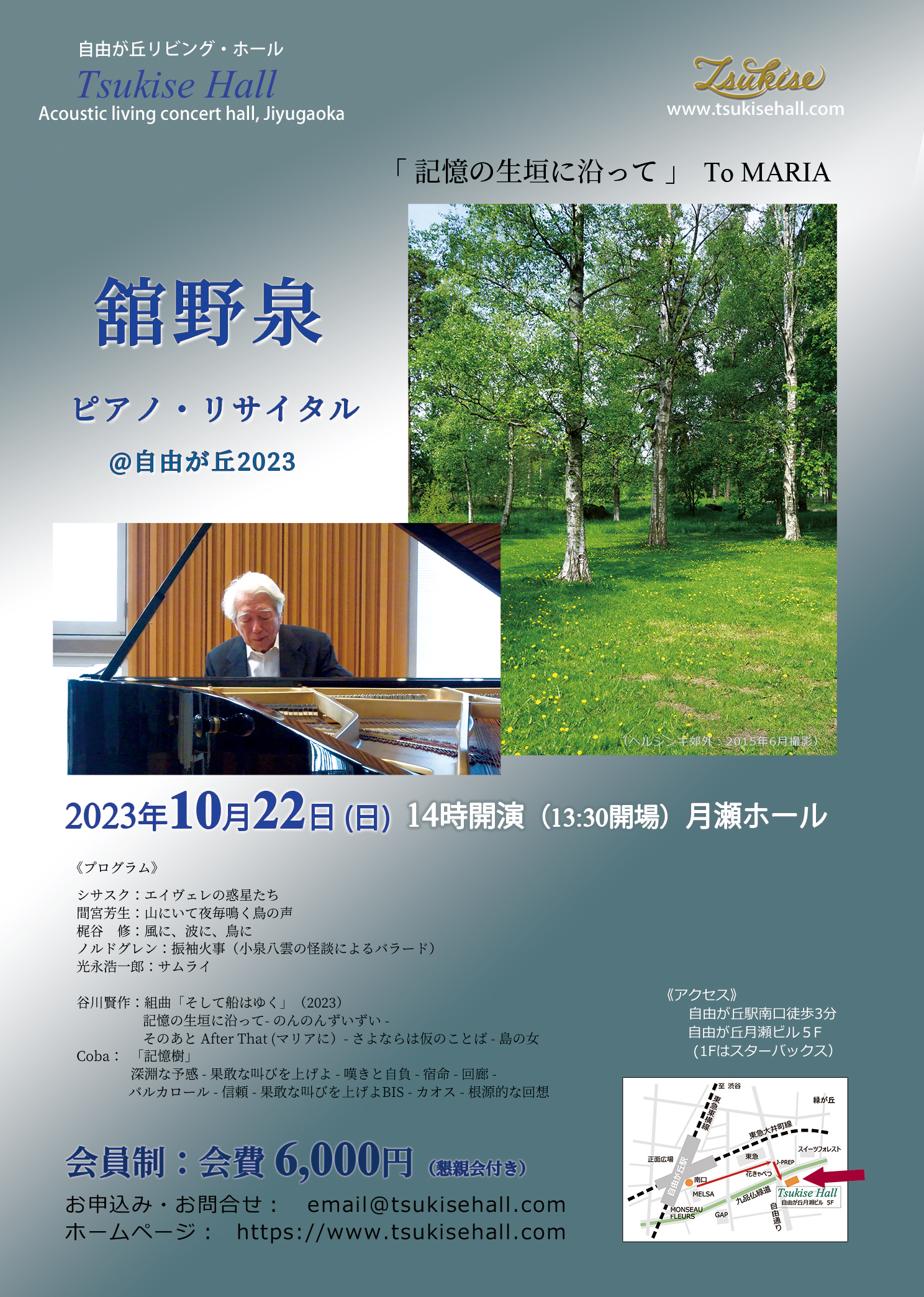 2023年10月22日(日)午後2時 舘野泉ピアノ・リサイタル @自由が丘 は終了しました。ご来場御礼。