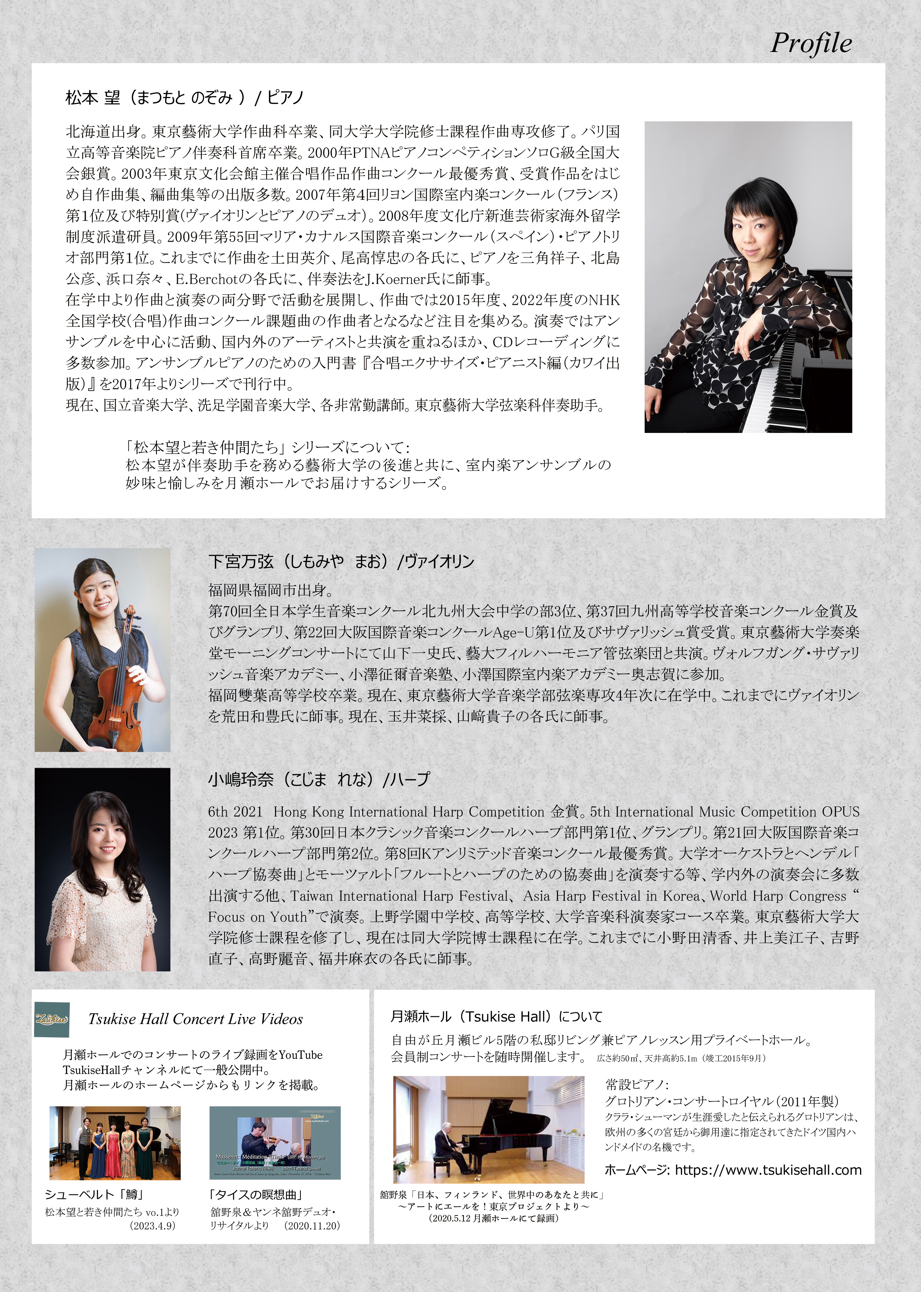 《出演》下宮万弦(ヴァイオリン) 小嶋玲奈(ハープ) 松本望(ピアノ)