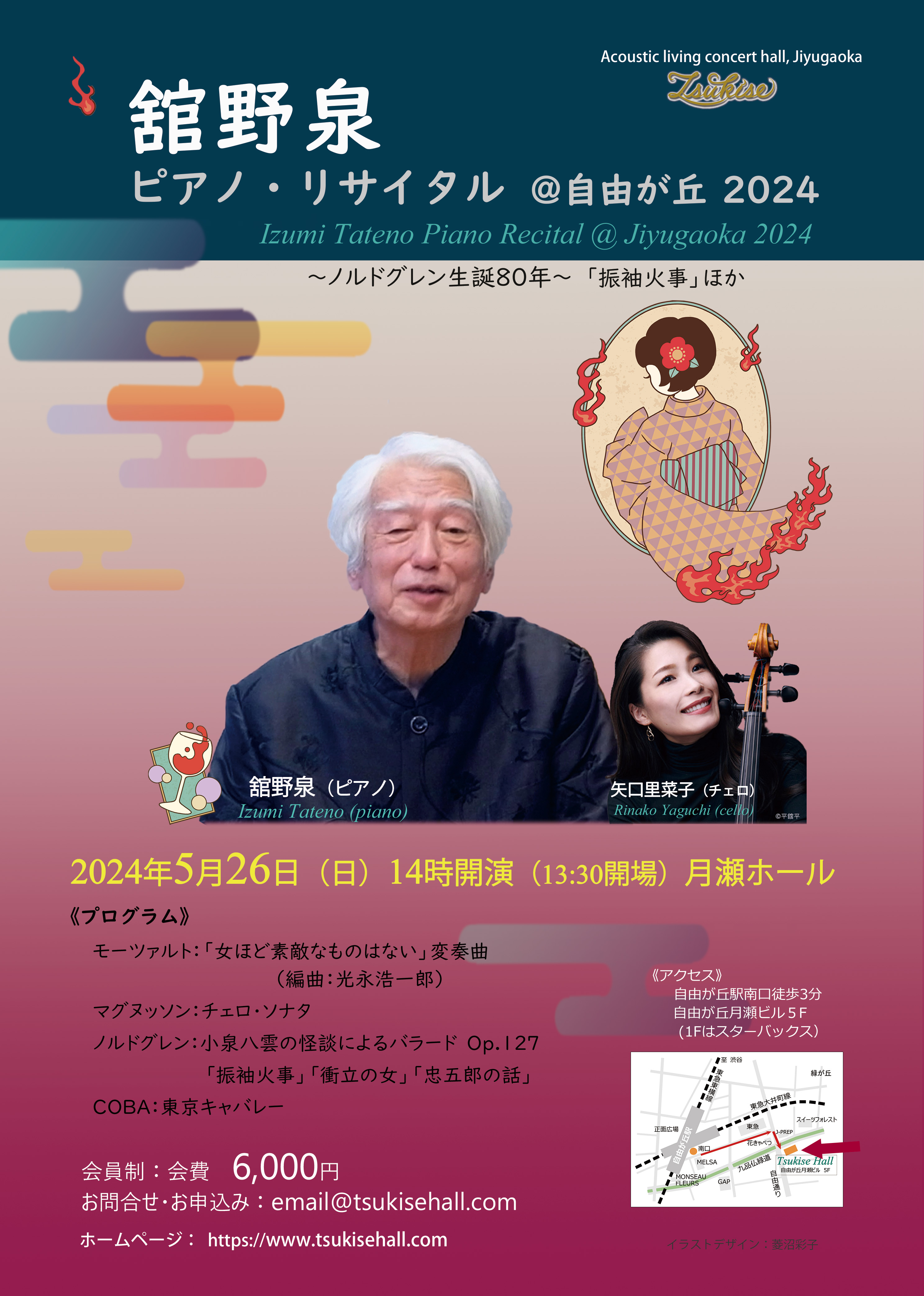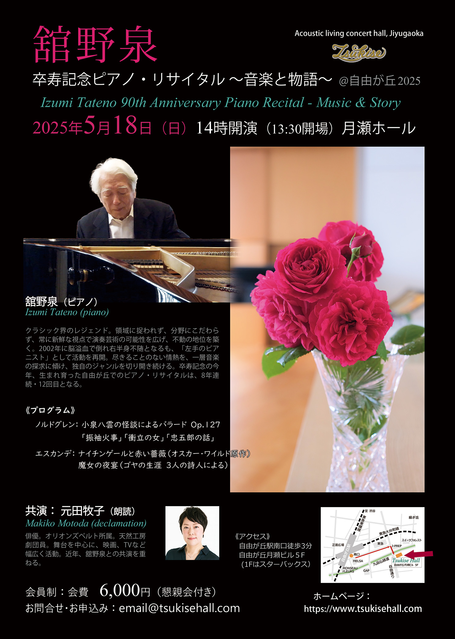 レジェンド舘野泉さんの卒寿をお祝いして、月瀬ホールで12回目のピアノ・リサイタルを開催します!懇親会付きです。