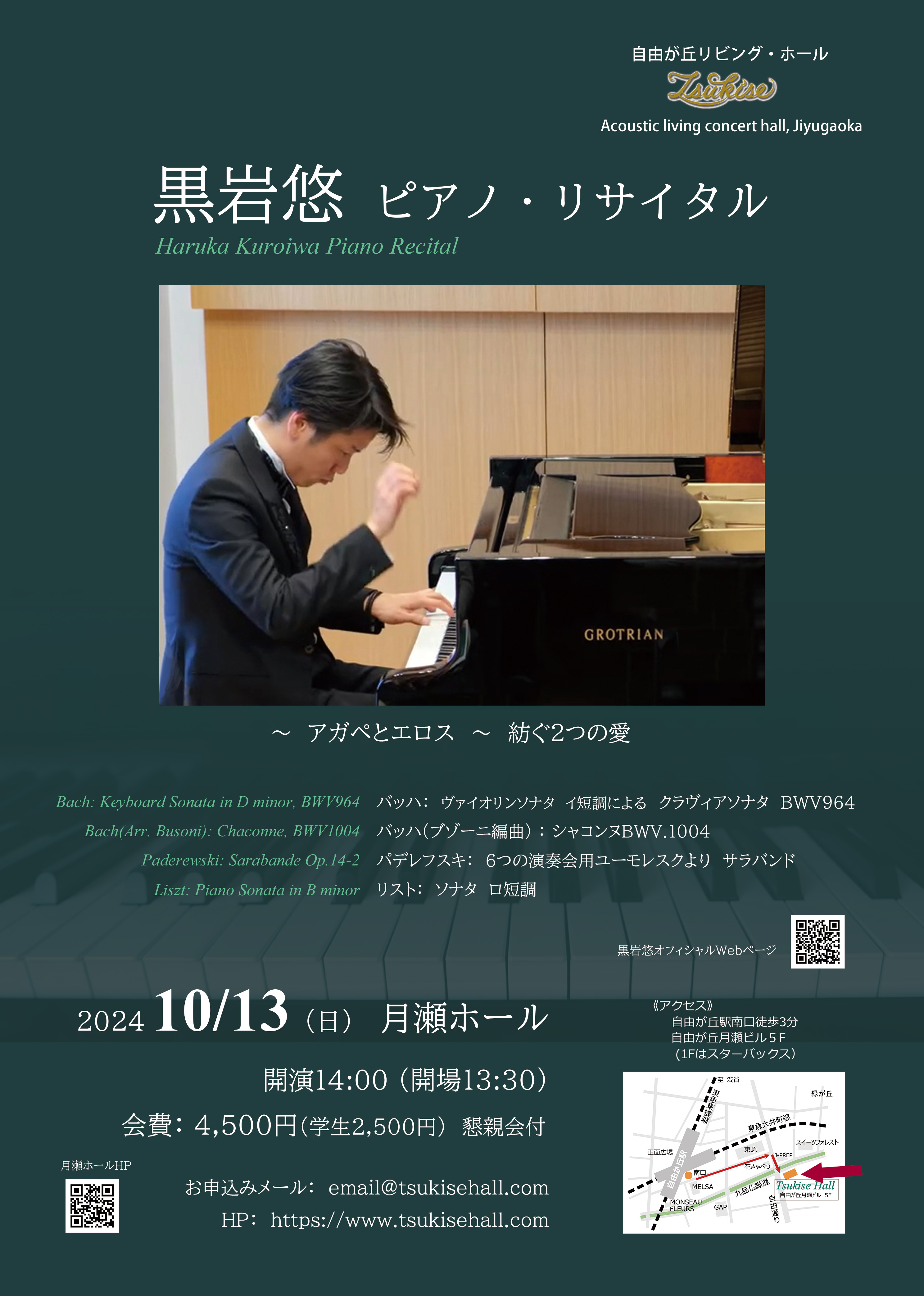 2024年10月13日(日)午後2時 黒岩悠ピアノ・リサイタル は終了しました。満員御礼。