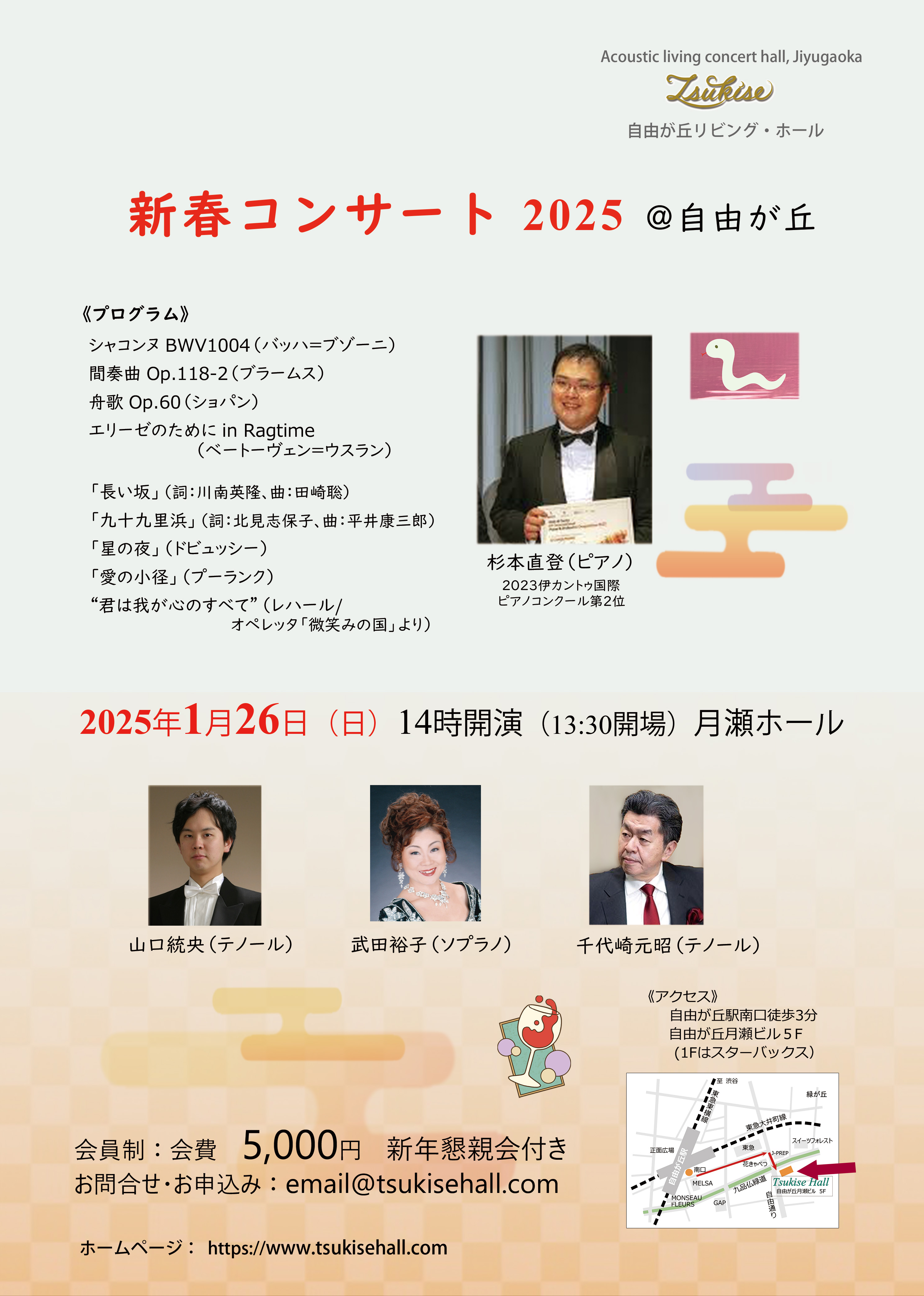 2025年1月26日(日)午後2時 新春コンサート2025@自由が丘 は終了しました。満員御礼。
