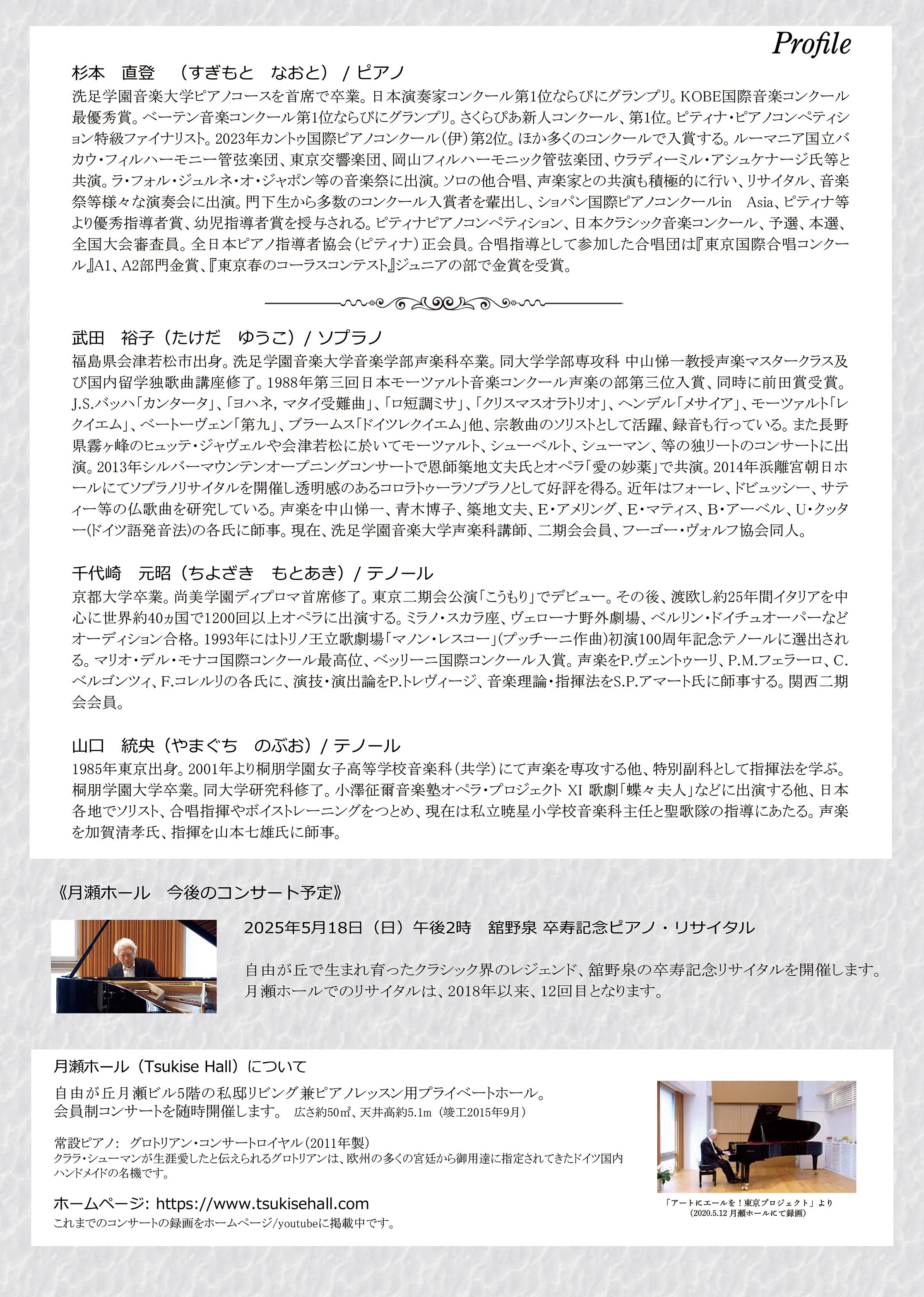 午後3時~ 石川 優紀 (メゾソプラノ)、 午後4時~ 宇津木 泰子 (ソプラノ) 、