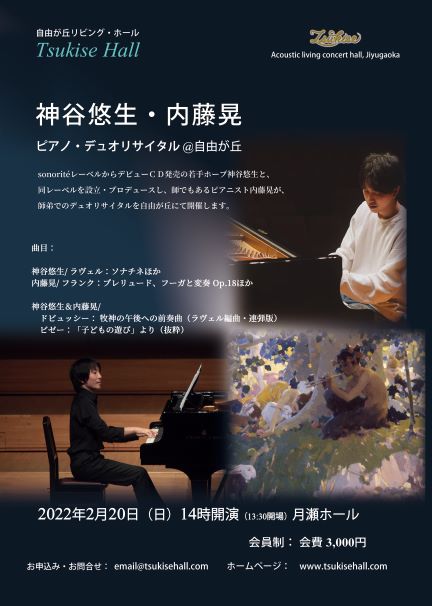 2022年2月20日(日)神谷悠生・内藤晃ピアノ・デュオリサイタル @自由が丘 は終了しました。ご来場御礼。