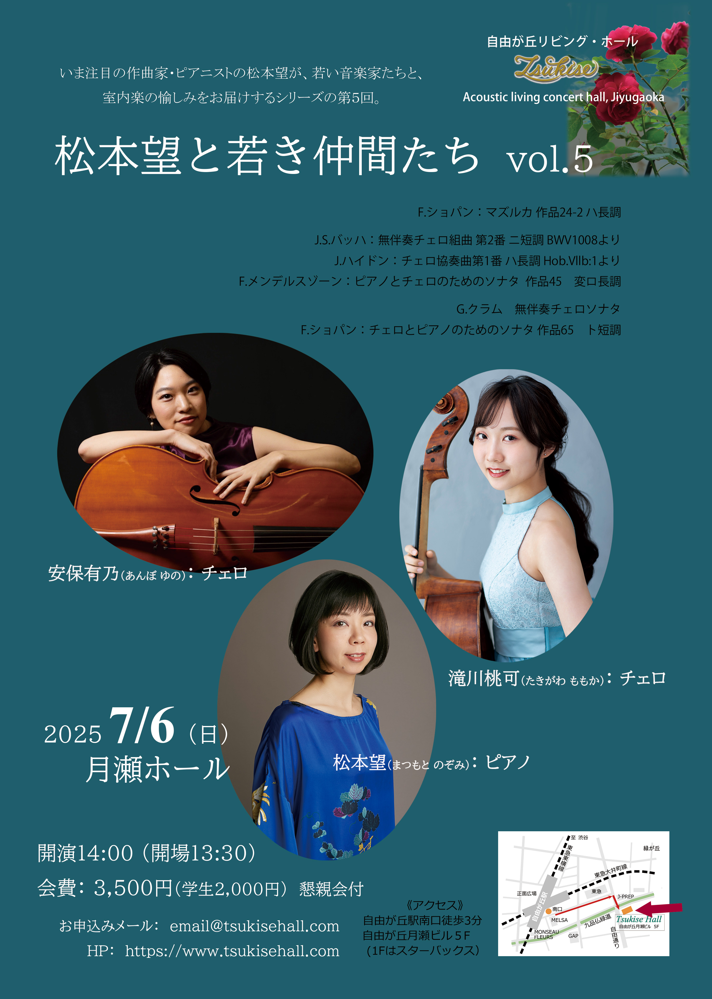2025年7月6日(日)午後2時 松本望と若き仲間たち Vol.5 は終了しました。満員御礼。